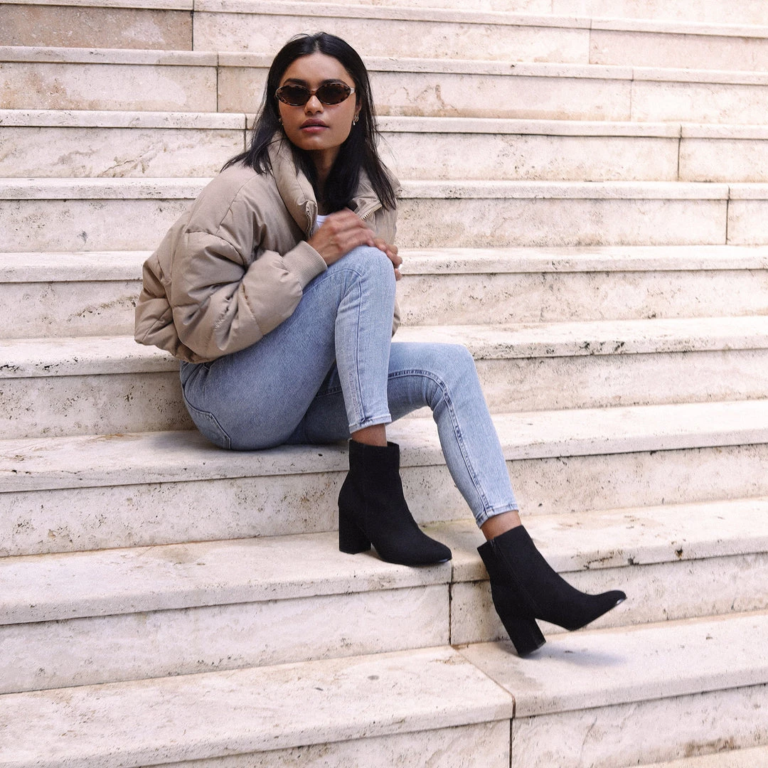 Biglove is an ankle boot. Featuring a block heel, soft faux suede fabric and an inner zip. Biglove is classic, sleek and the perfect staple item for your shoedrobe, versatility is Biglove’s middle name. Step into Biglove boots by London Rebel.