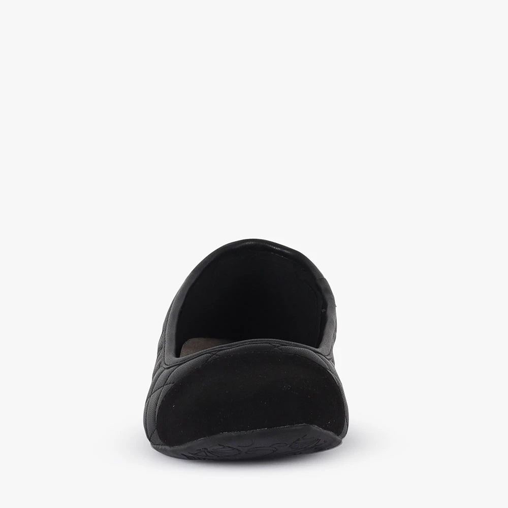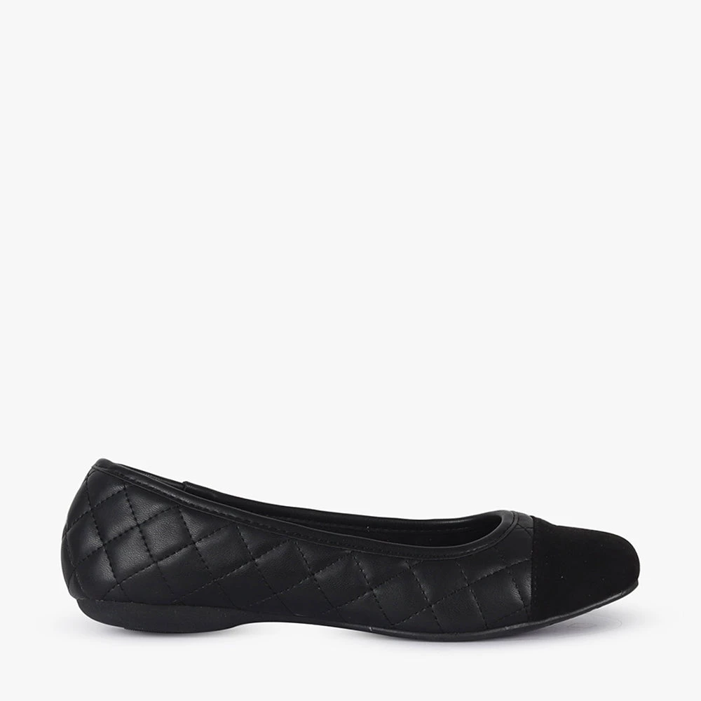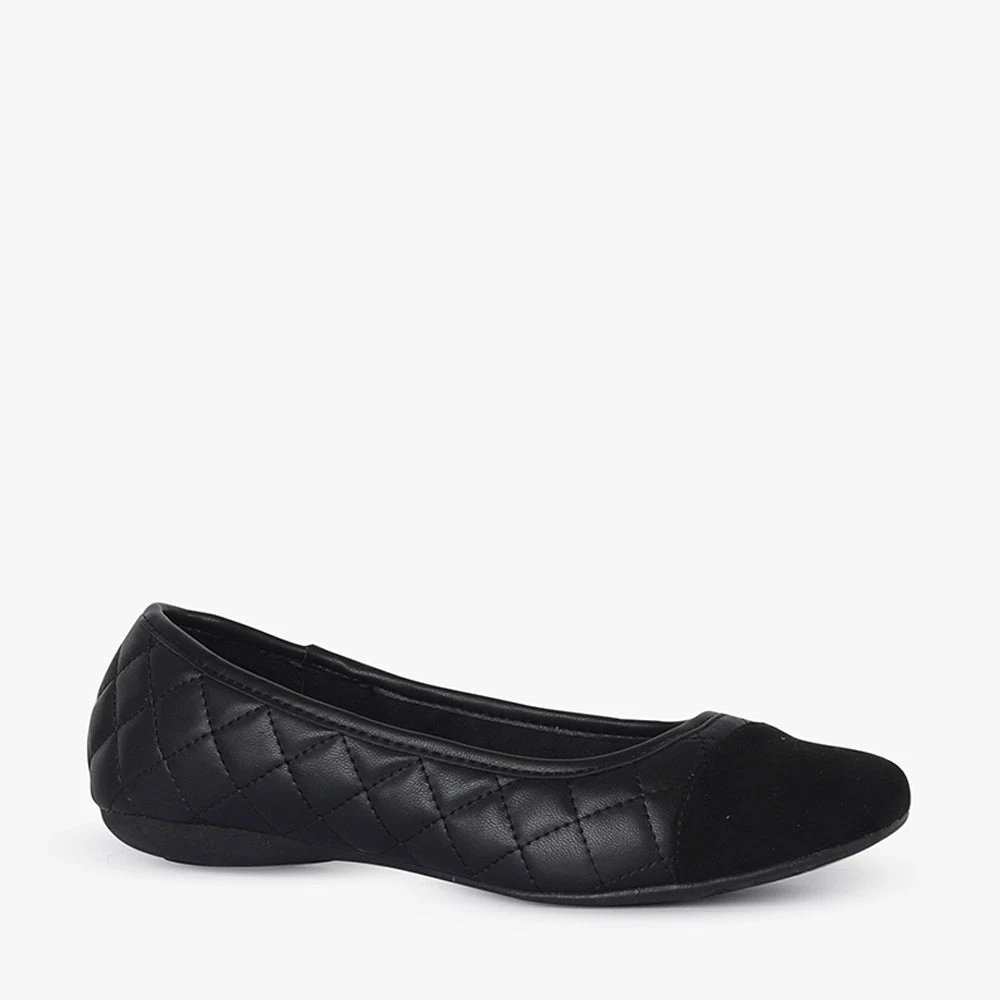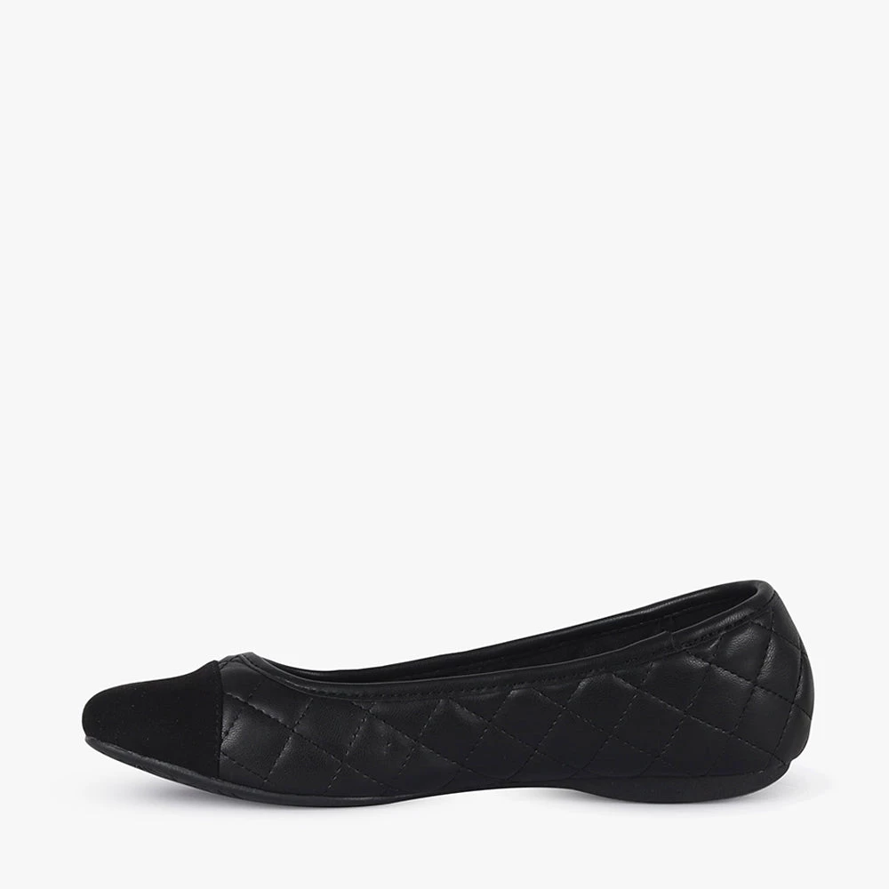 Featuring a quilted look upper and micro suede finish on the toe. This flat has extra padding on the inner-sole which makes it perfect for the office, or for a comfortable everyday pair. Style it with tailored pants for a sophisticated look, or jeans and a blazer for a cool but casual vibe.Â