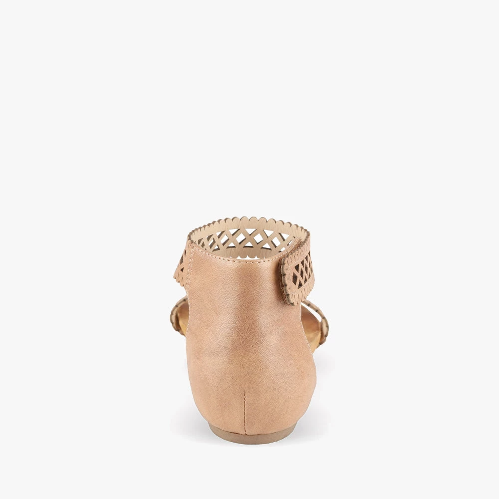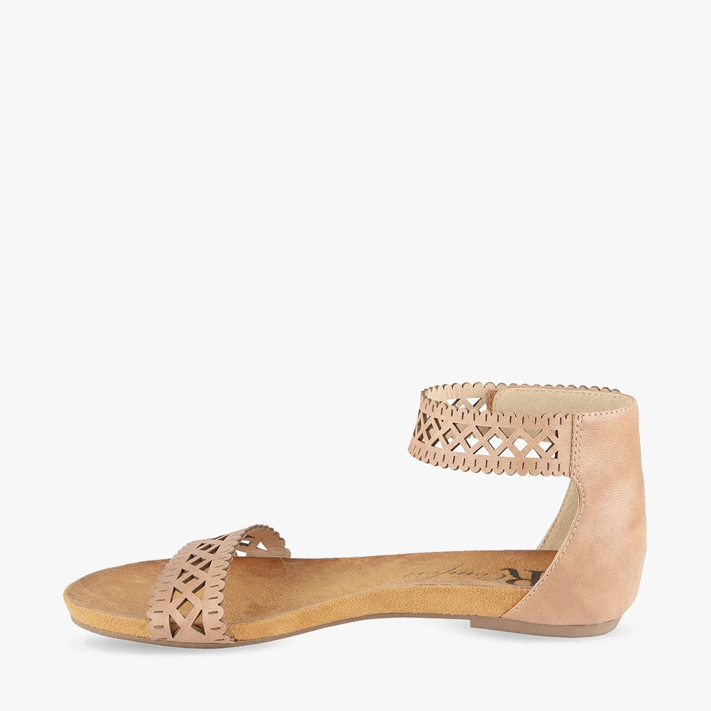 Marcia is an open sandal with a comfortable footbed. Featuring a laser cut strap encircling the ankle and across the toes, these sandals will give life to any outfit! With a velcro strap and enclosed quarter, the Marcia sandal by London Rebel Comfort provides comfort and easy wear.