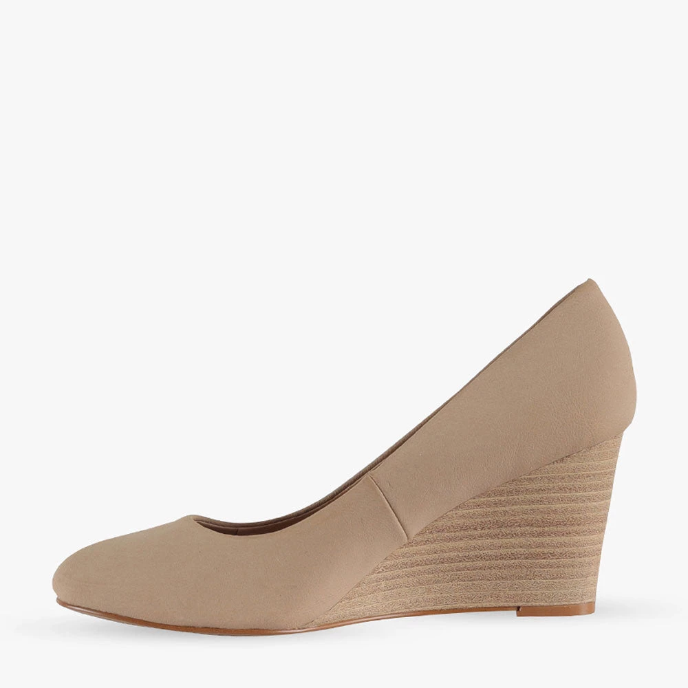 Newmollya is fitted with comfort padding on the innersole, making these shoes the perfect combination of comfort and style. With an almond shape toe and a medium height wedge heel it can be dressed up or down and will suit your outfit for any occasion. Stroll away in Newmollya by London Rebel Comfort.