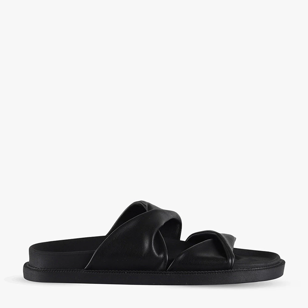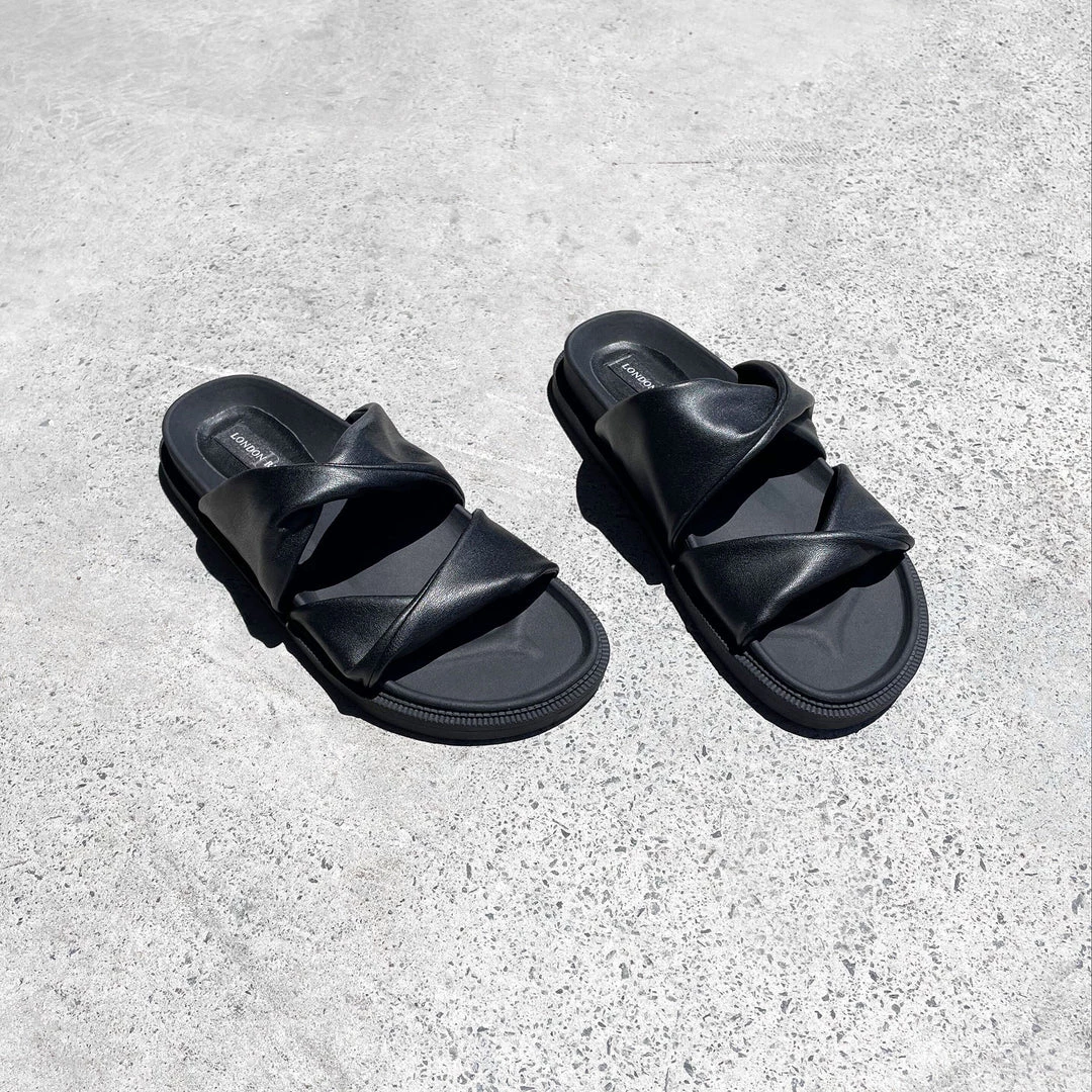 Featuring a chunky rubber sole and soft twisted style upper, this slide on sandal is sure to be your newest everyday fave!