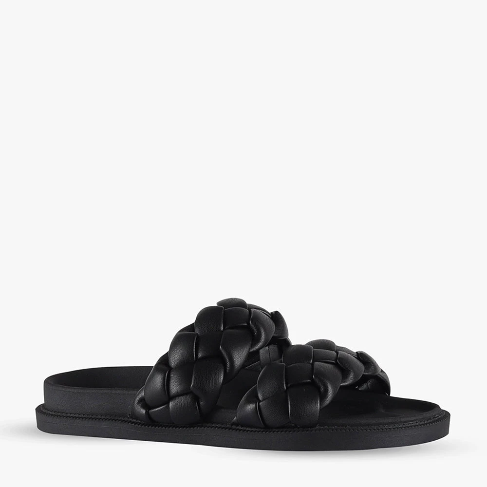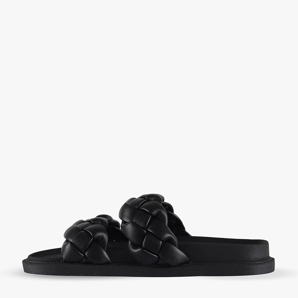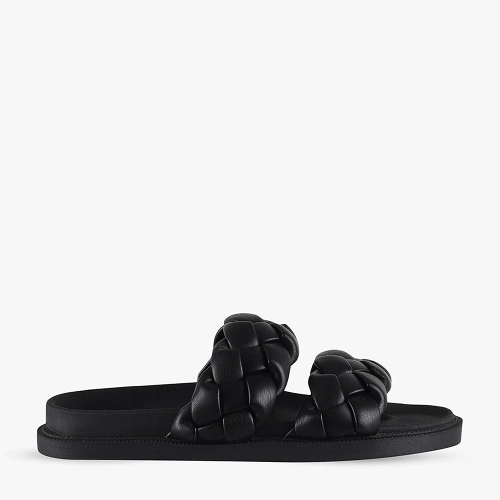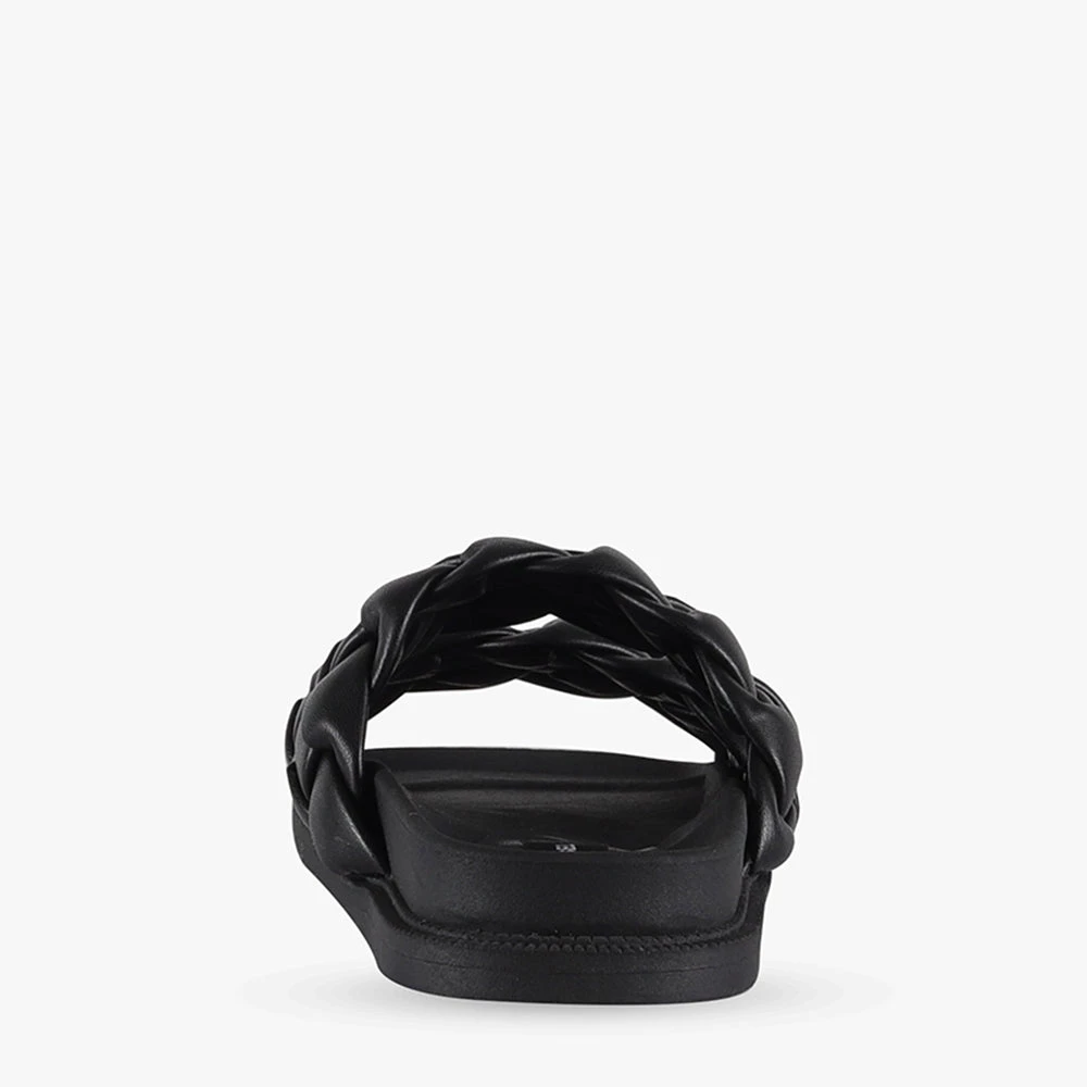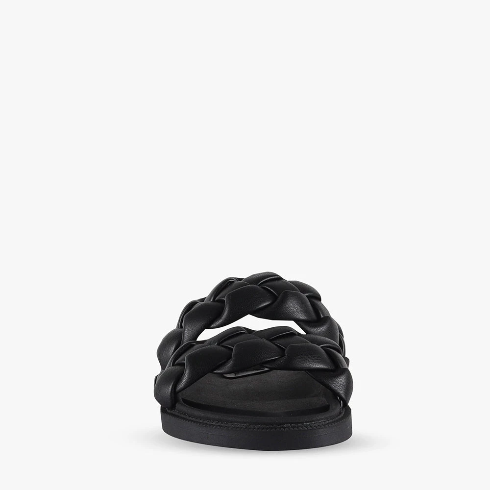 Kalee is a black chunky slide on sandal.