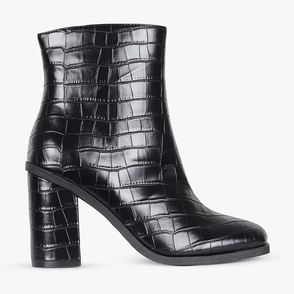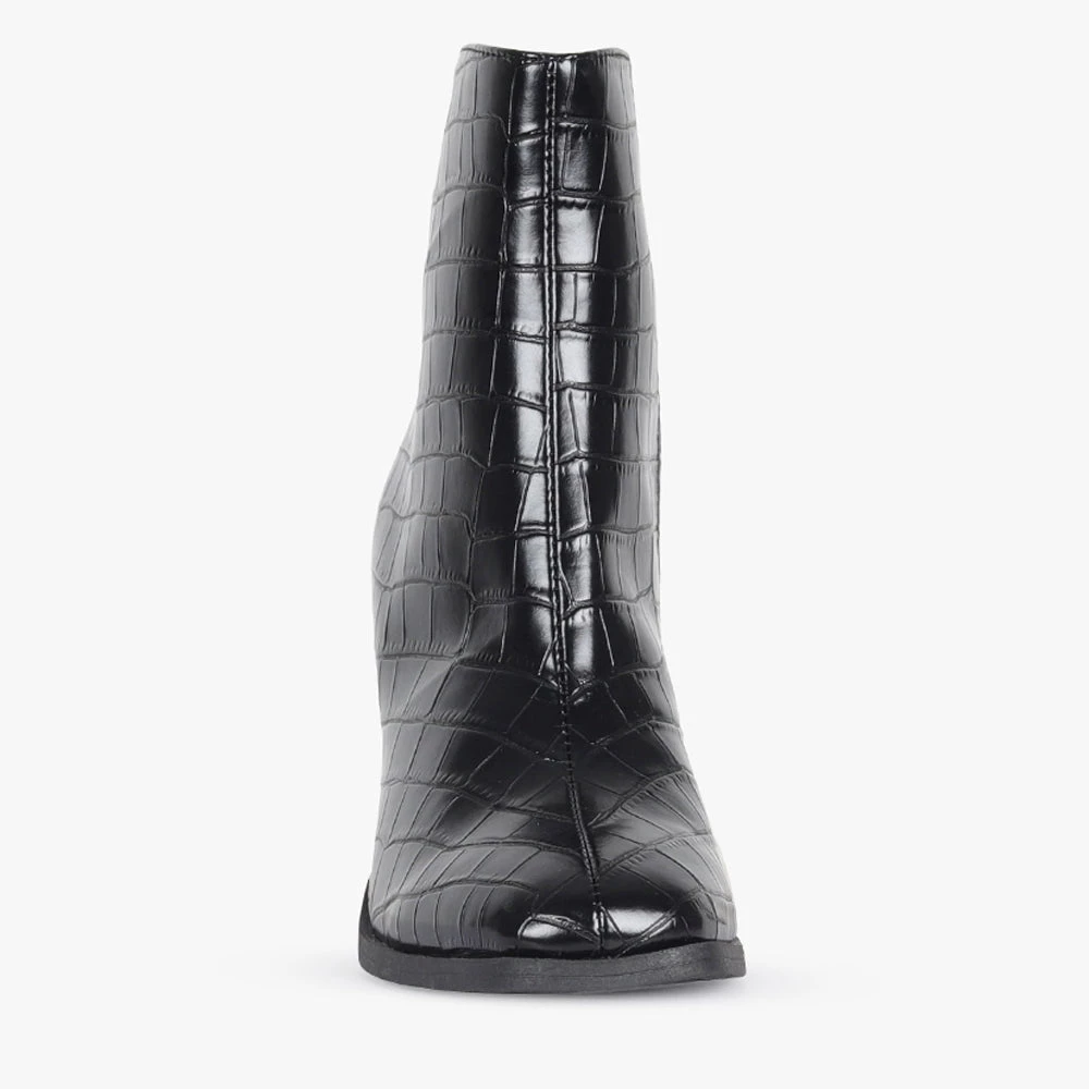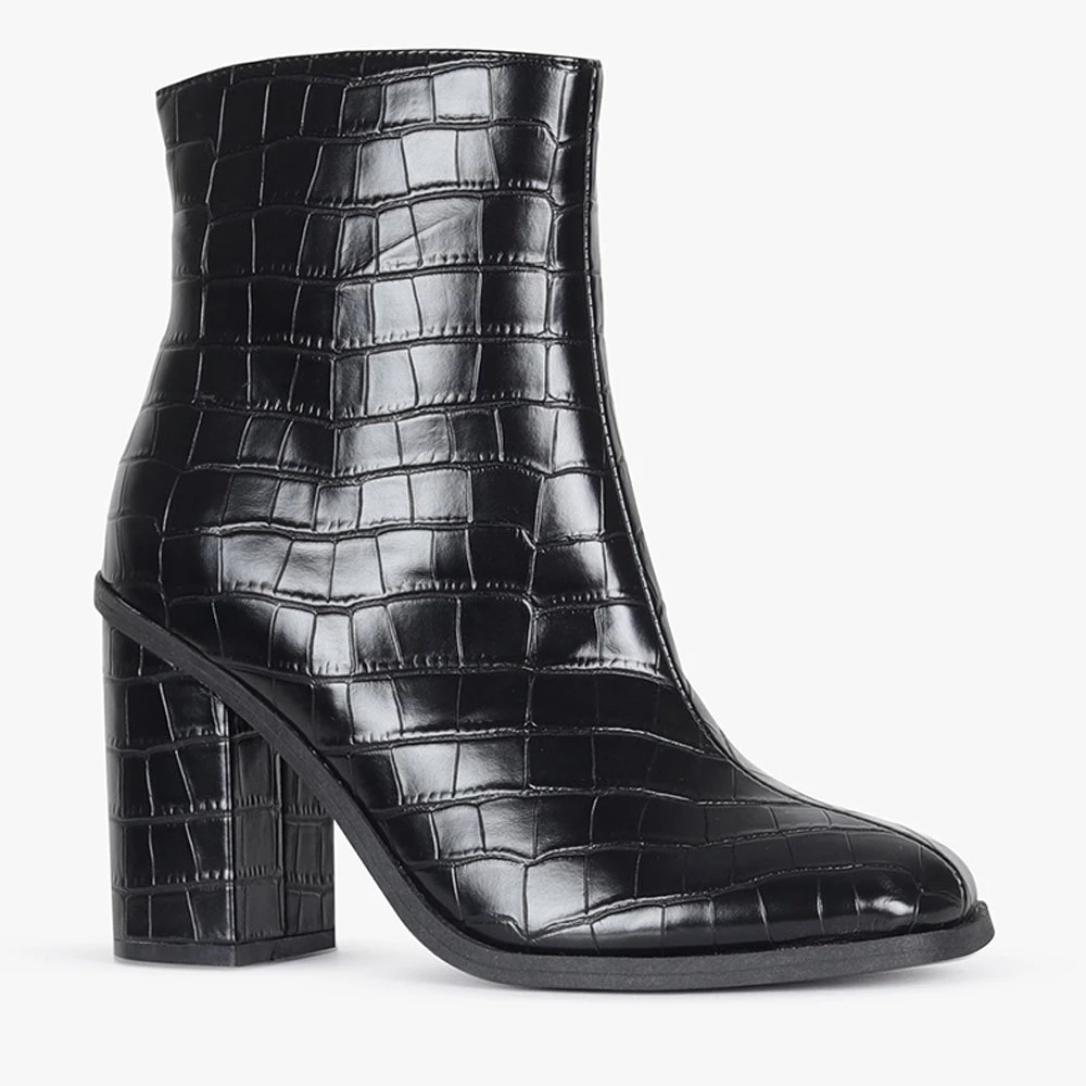 With an on trend minimal vibe about it, is it the perfect staple boot! With a comfortable block heel, and reptile pattern finish this style will easily become your go-to for all year round dressing.
