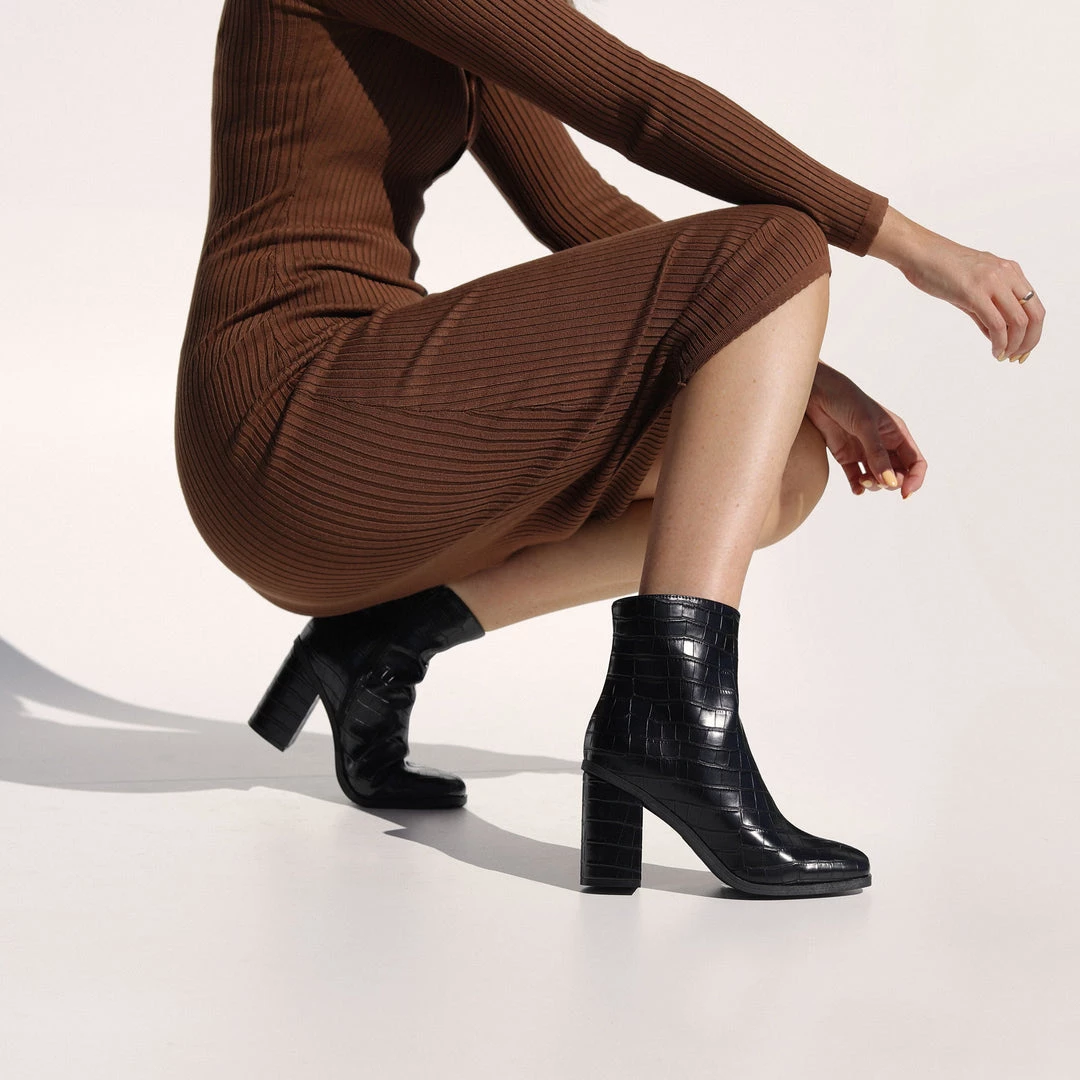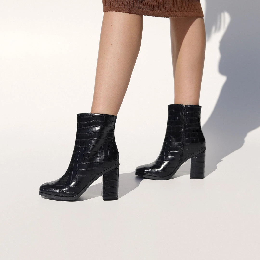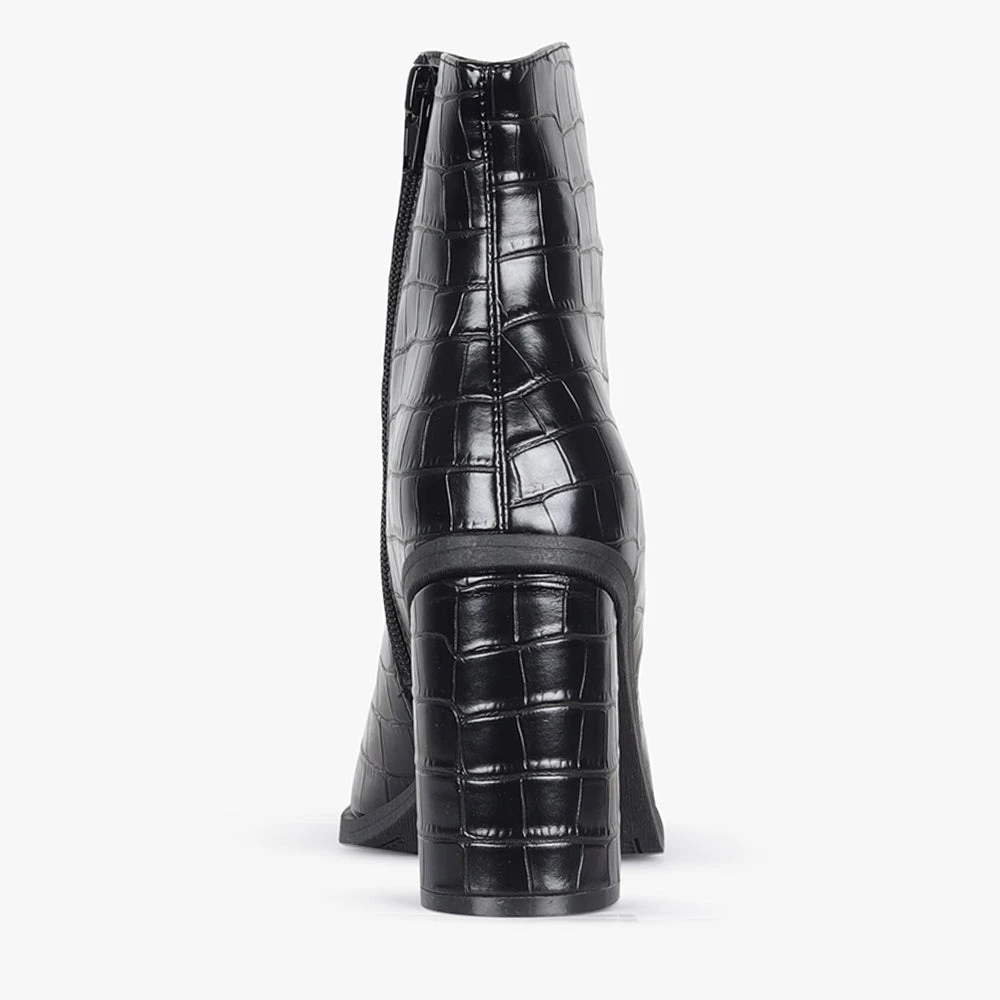 With an on trend minimal vibe about it, is it the perfect staple boot! With a comfortable block heel, and reptile pattern finish this style will easily become your go-to for all year round dressing.