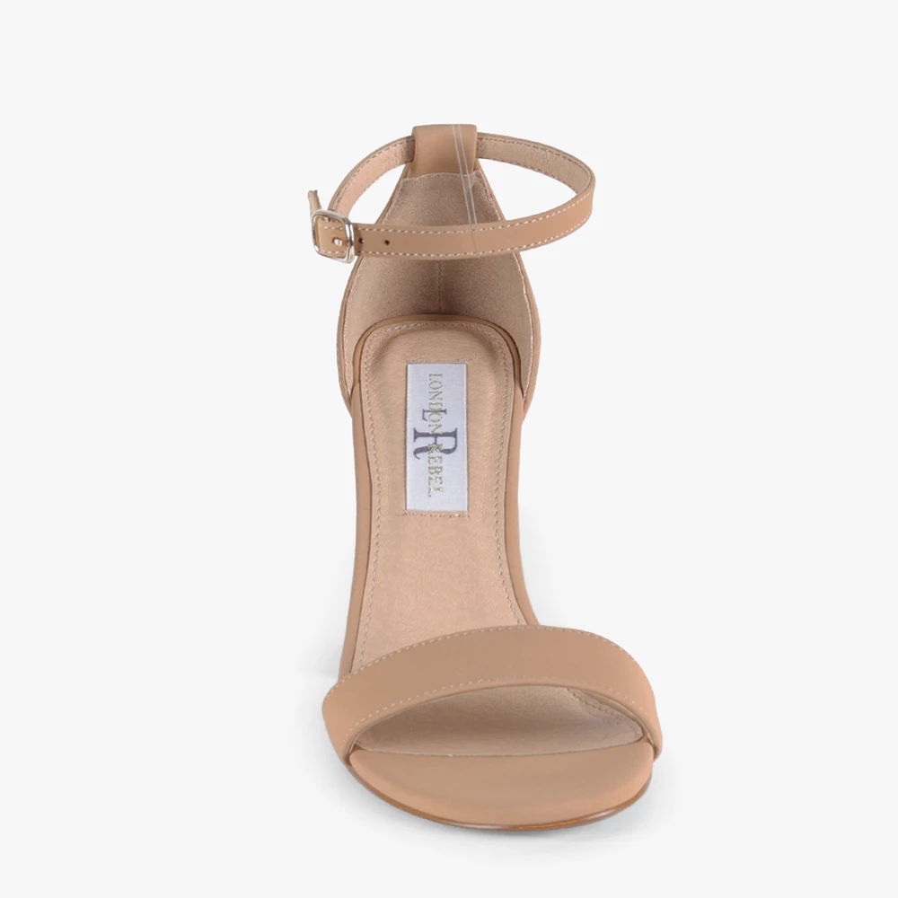 Featuring a delicate strap across the toes and another fastening around the ankle. Versatile in design and style, these strappy heels by London Rebel will fulfil nearly all of your shoe needs!
