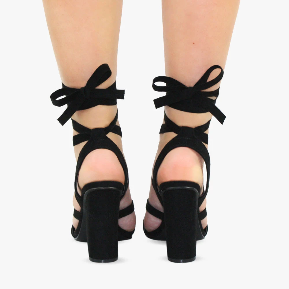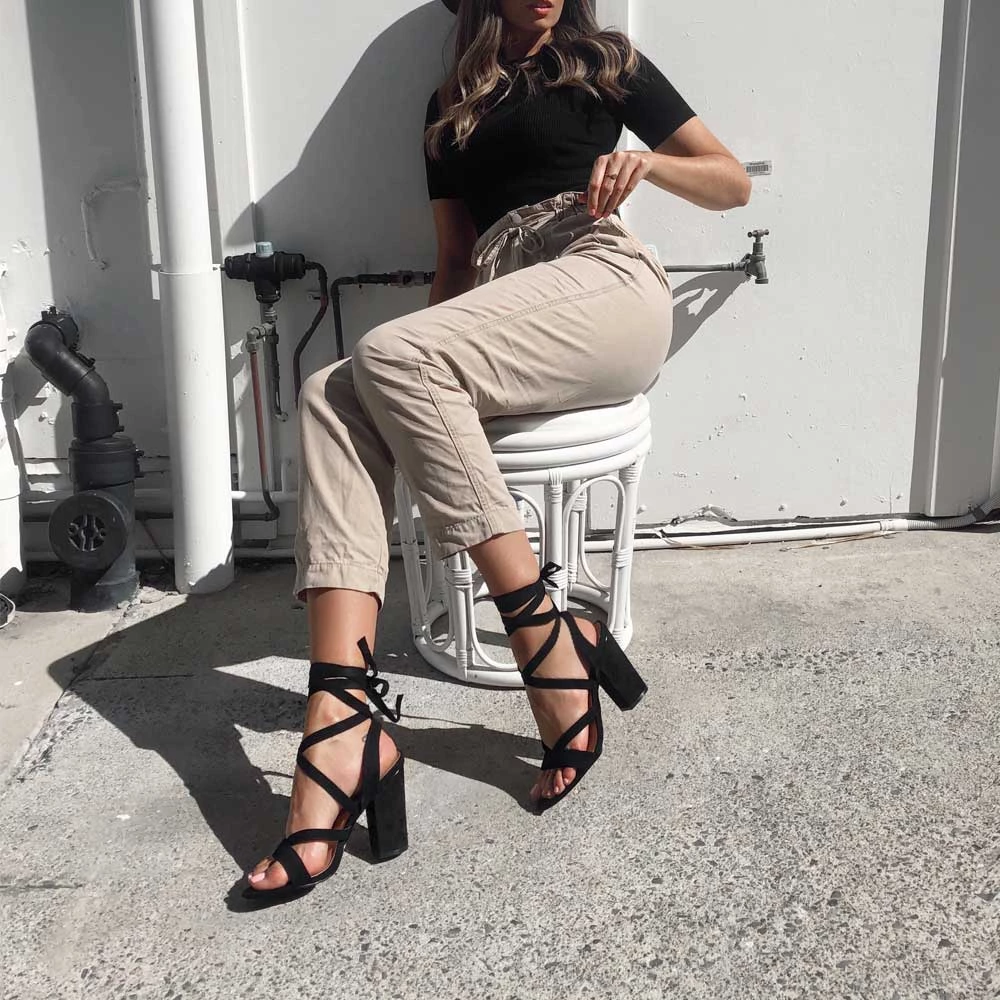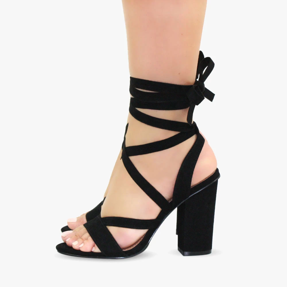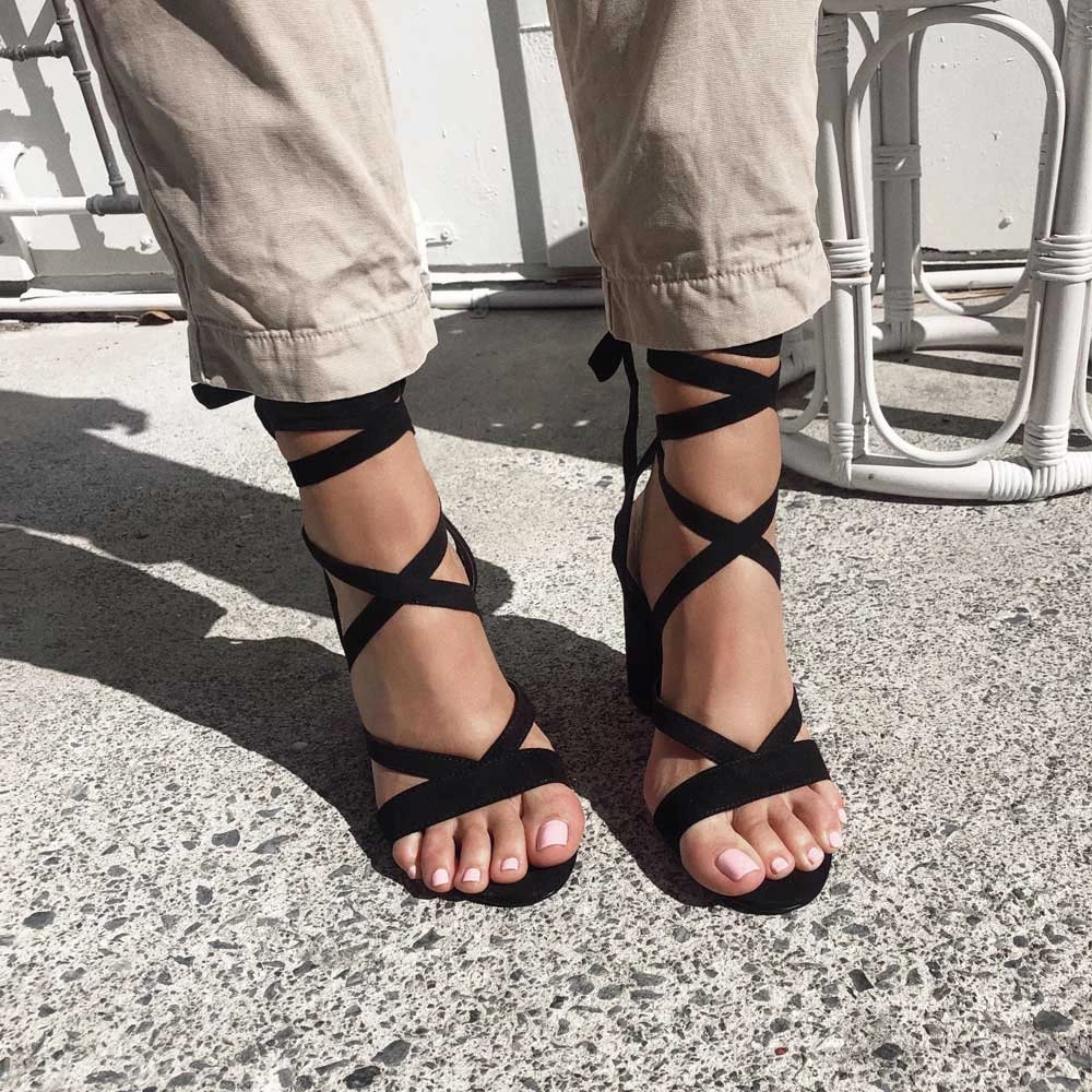 Minella is an open toe, block heel. This little baby is all about versatility with the option to wrap up the legs, or keep tied around the ankle. Elongate your legs by teaming Minella high heels with a floaty mini dress or high-waisted shorts. Look pretty in Minella by London Rebel.