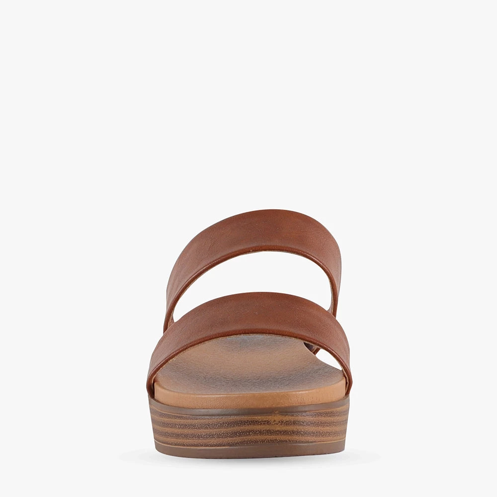 This double strap sandal will give you a bit of extra height and all the comfort! A basic style that will fit seamlessly in with your wardrobe, and be your go to this season! Step out in your Nelle sandals from London Rebel.