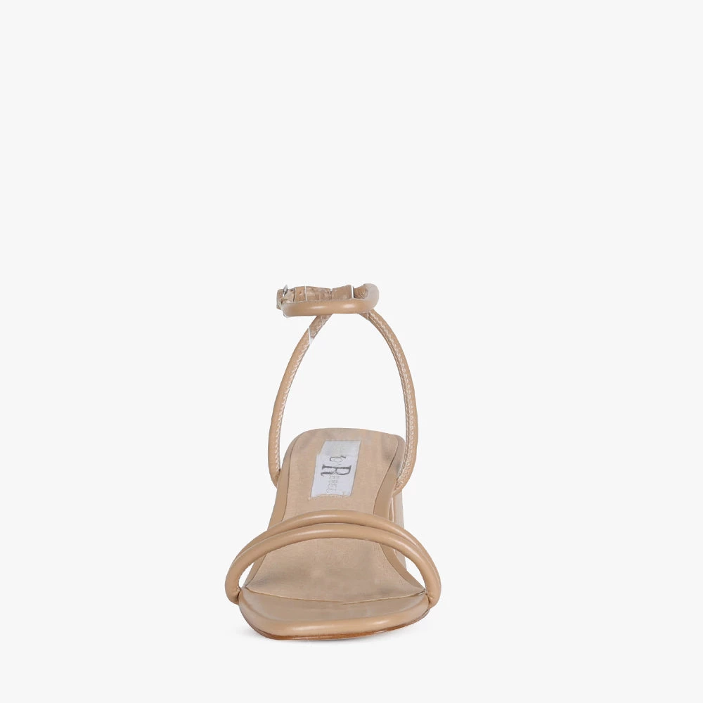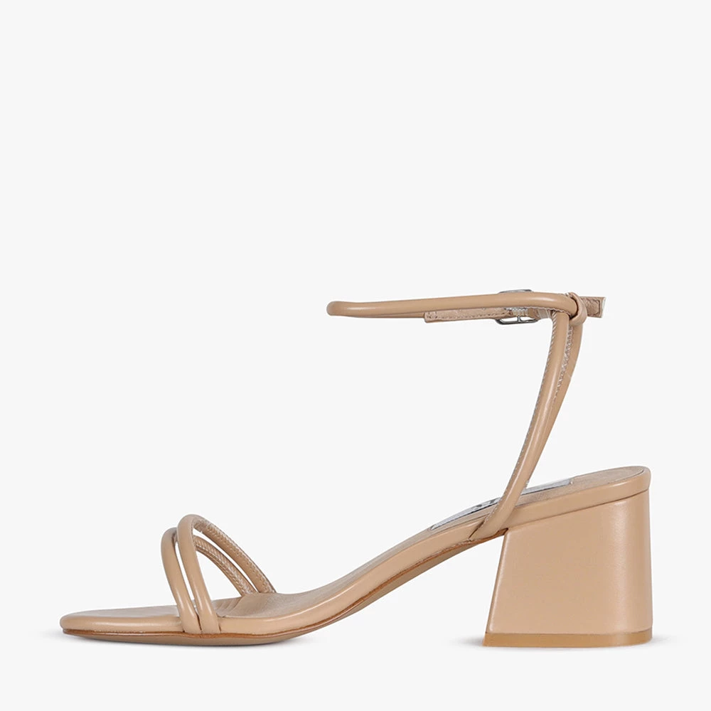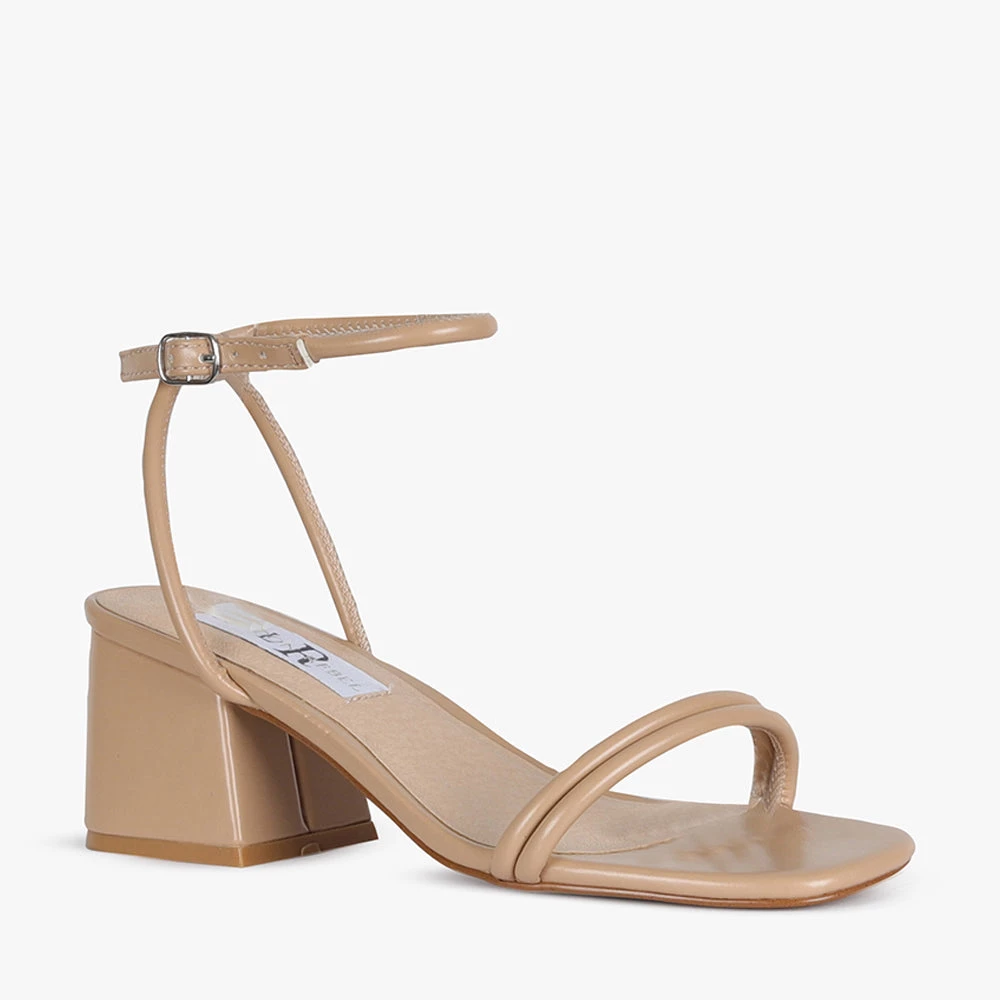 These simple and sweet low block heels feature two tubular straps across the toes, and a wrap around adjustable ankle strap. Take this shoe from work to dinner!