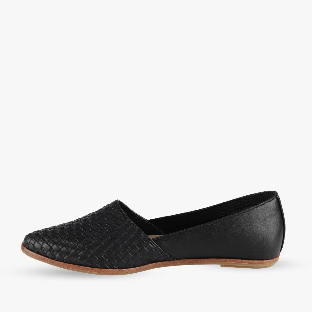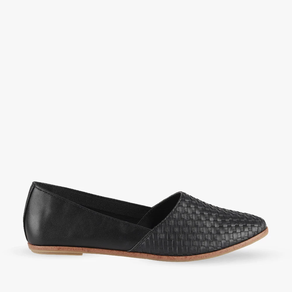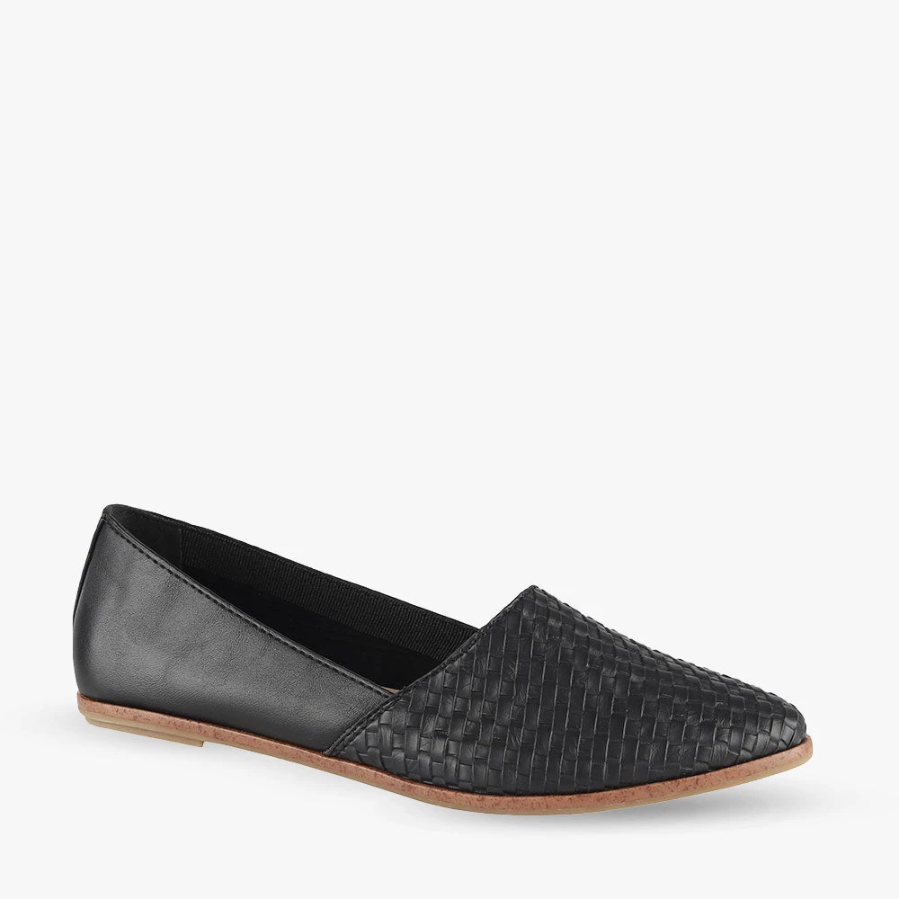 Revami is a ballet flat. Featuring a pointed toe and textured woven-look front half contrasted against a smooth colour-matched back half. This little cutie looks perfect with jeans and a lightweight knit jumper. Slip into Revami flats by London Rebel.