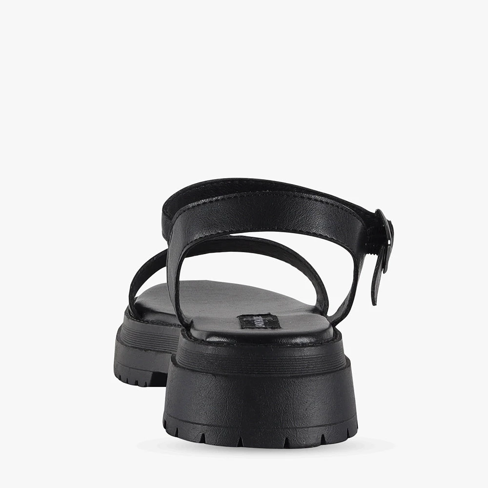 This chunky sandal will be your ultimate outfit completer, and perfect addition to your casual wardrobe. Featuring a flatform sole, a comfortable and supportive strap across the foot, and an adjustable ankle buckle. Add Mathie by London Rebel to your collection!