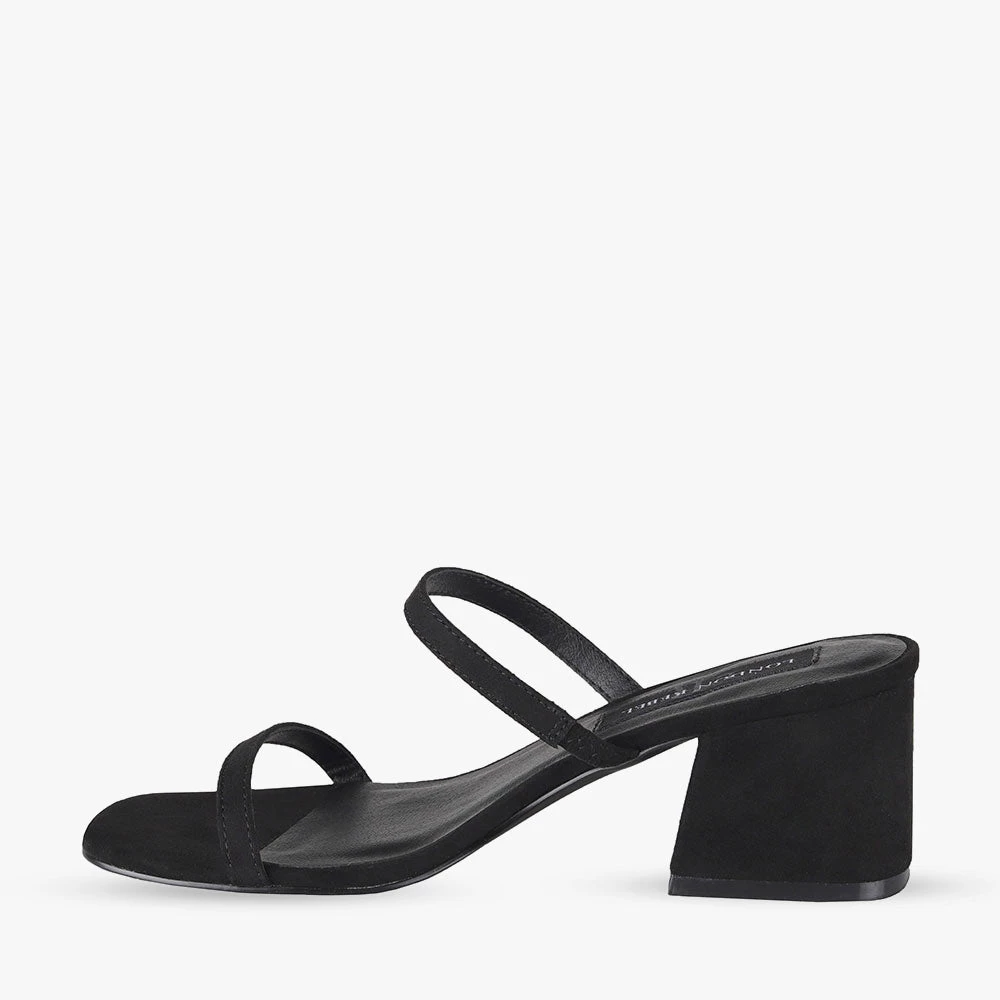 Savina is a mid height mule. Featuring two thin straps over the toe and the vamp. Savina is minimalist in all the best ways, a classy option for any ensemble and with a little added character in the flared heel, Savina are your must-have heels this season! Pick up Savina mules by London Rebel.