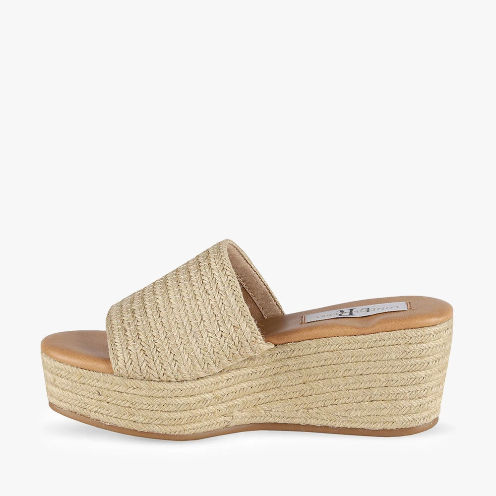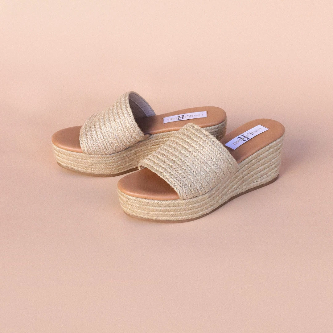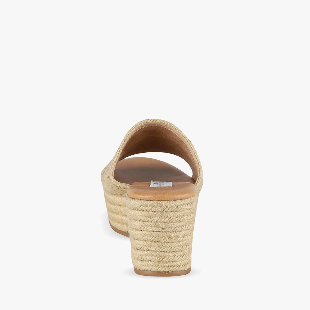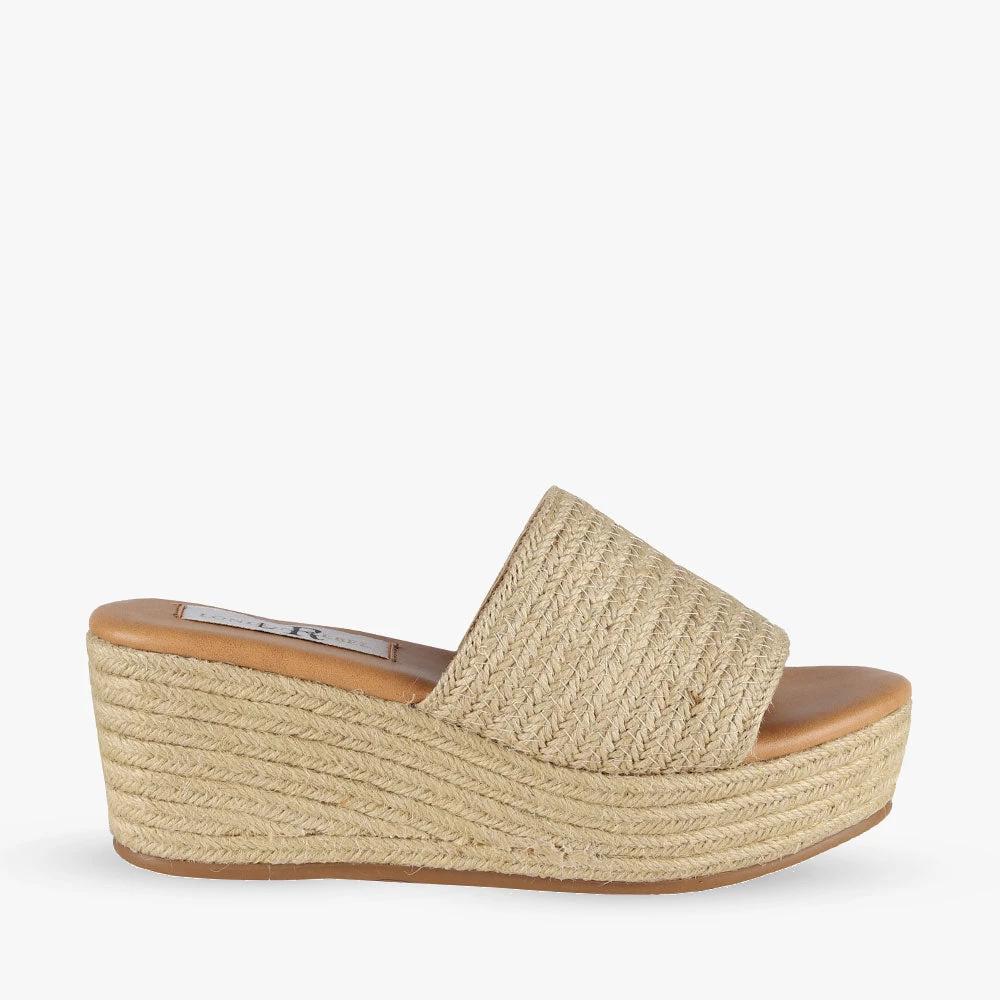 Maki is a mid height espadrille wedge. Flaunting natural coloured and natural braided raffia, Maki is the perfect companion to your shoe-drobe this season. Wear these cutie mules with mini dresses or with a denim mini and white blouse combo. Slide into Maki mule wedges by London Rebel.