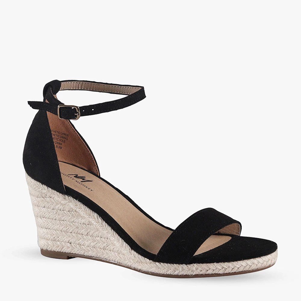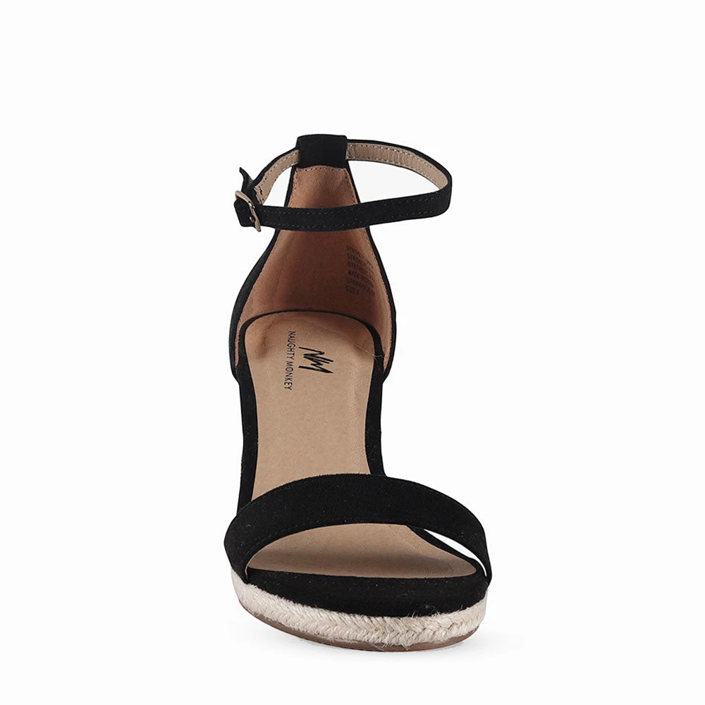 A classic, comfortable wedge to compliment your wardrobe this season! Featuring a jute style wedge and a slim ankle strap, the styling possibilities are endless. Step out in your Amara wedges by Naughty Monkey.