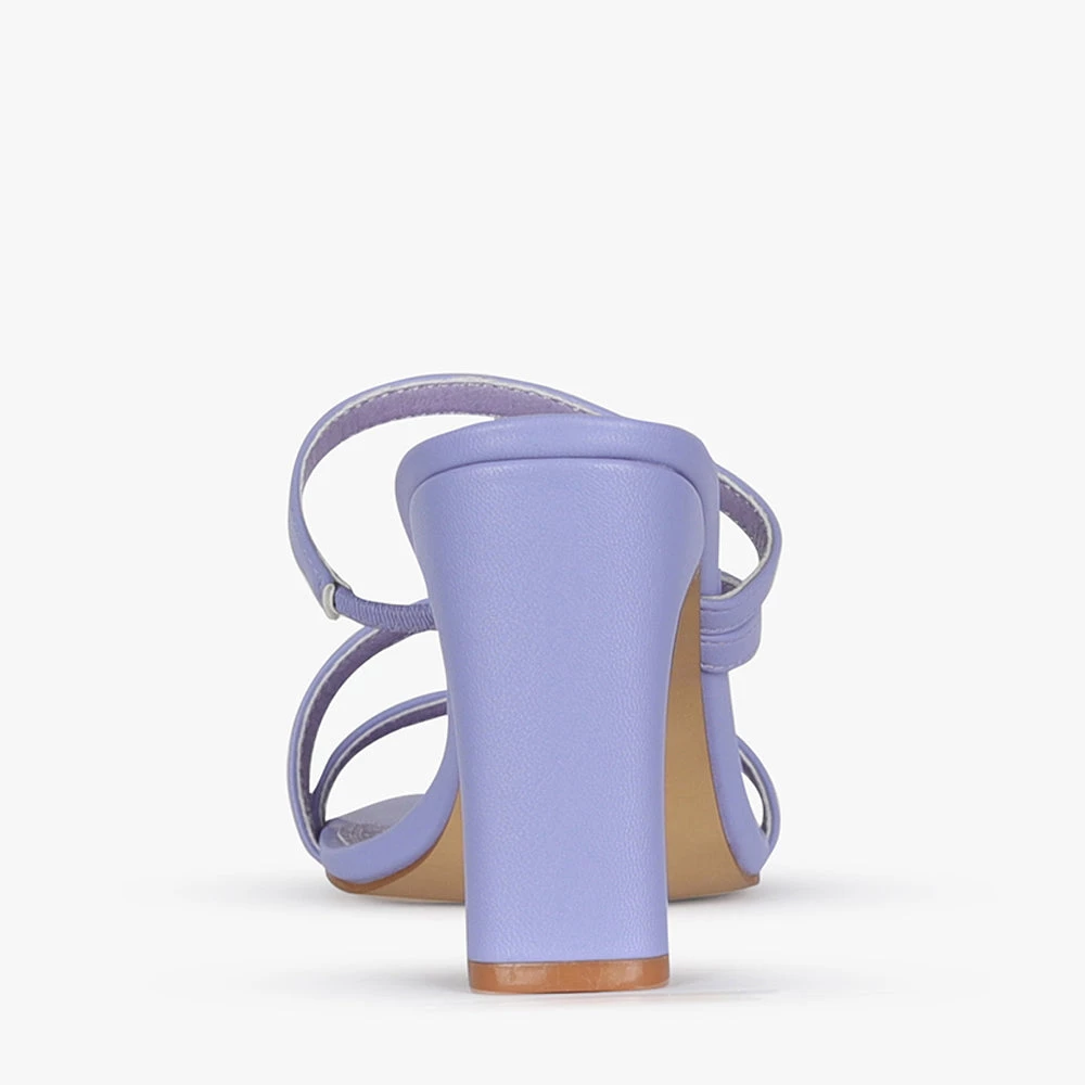 Kenny is a strappy block heel mule.