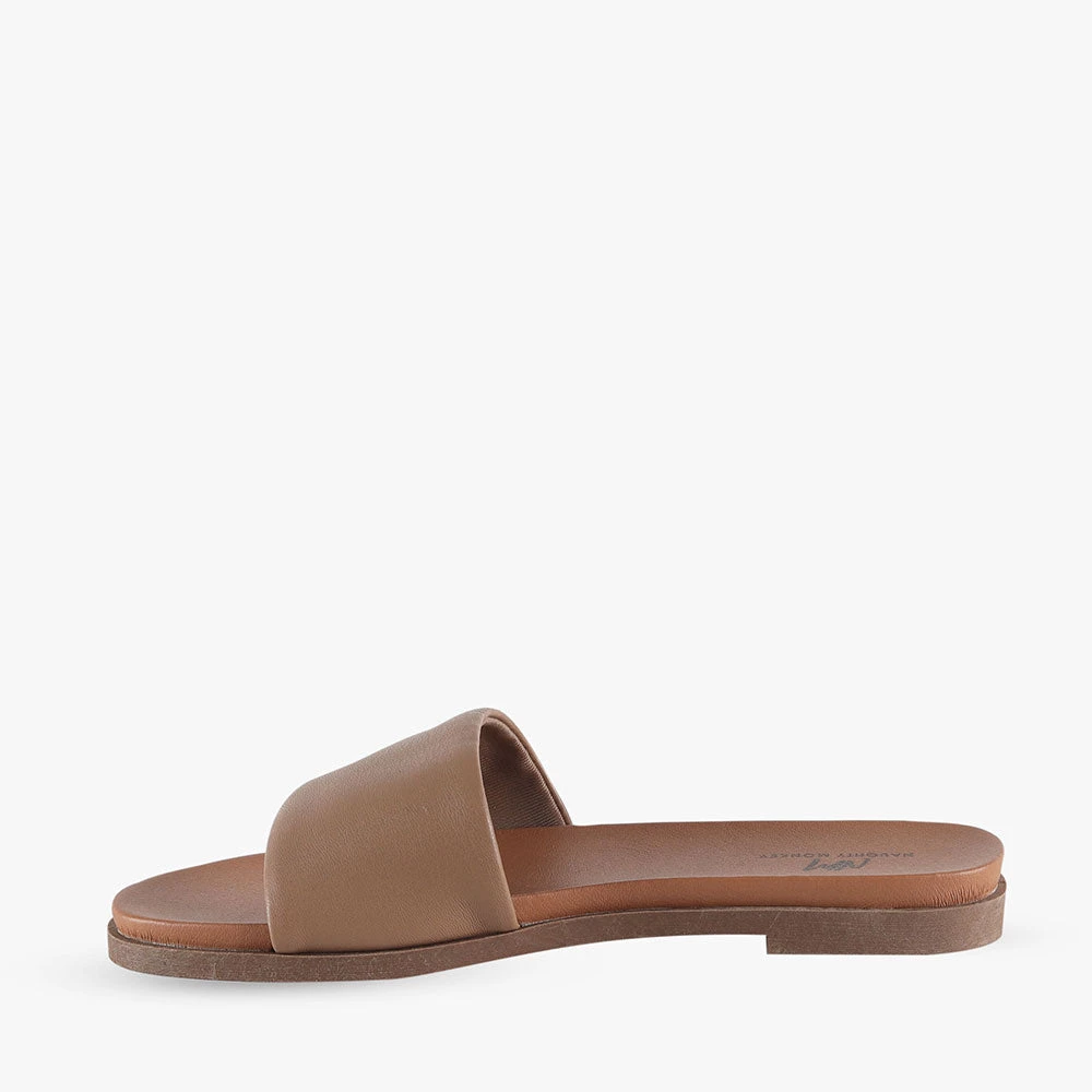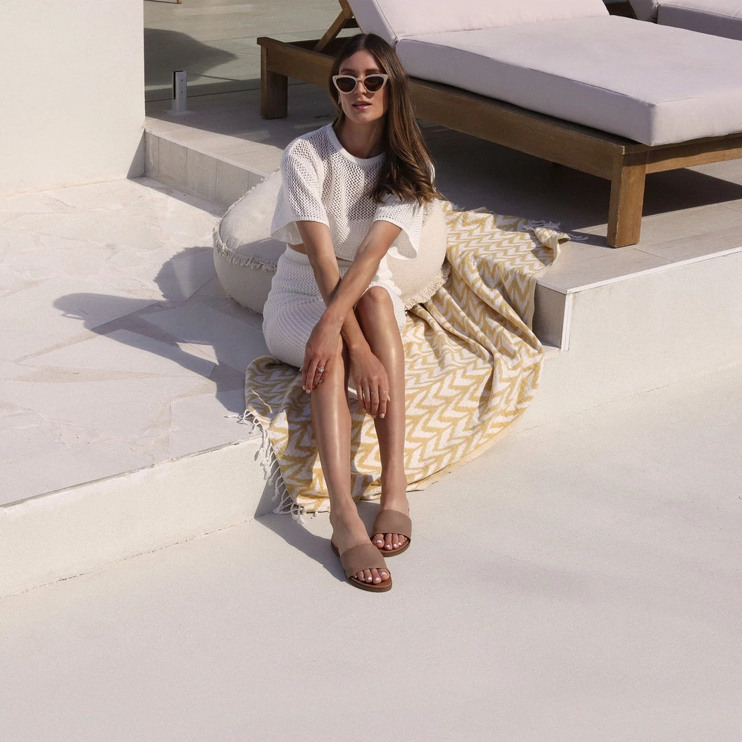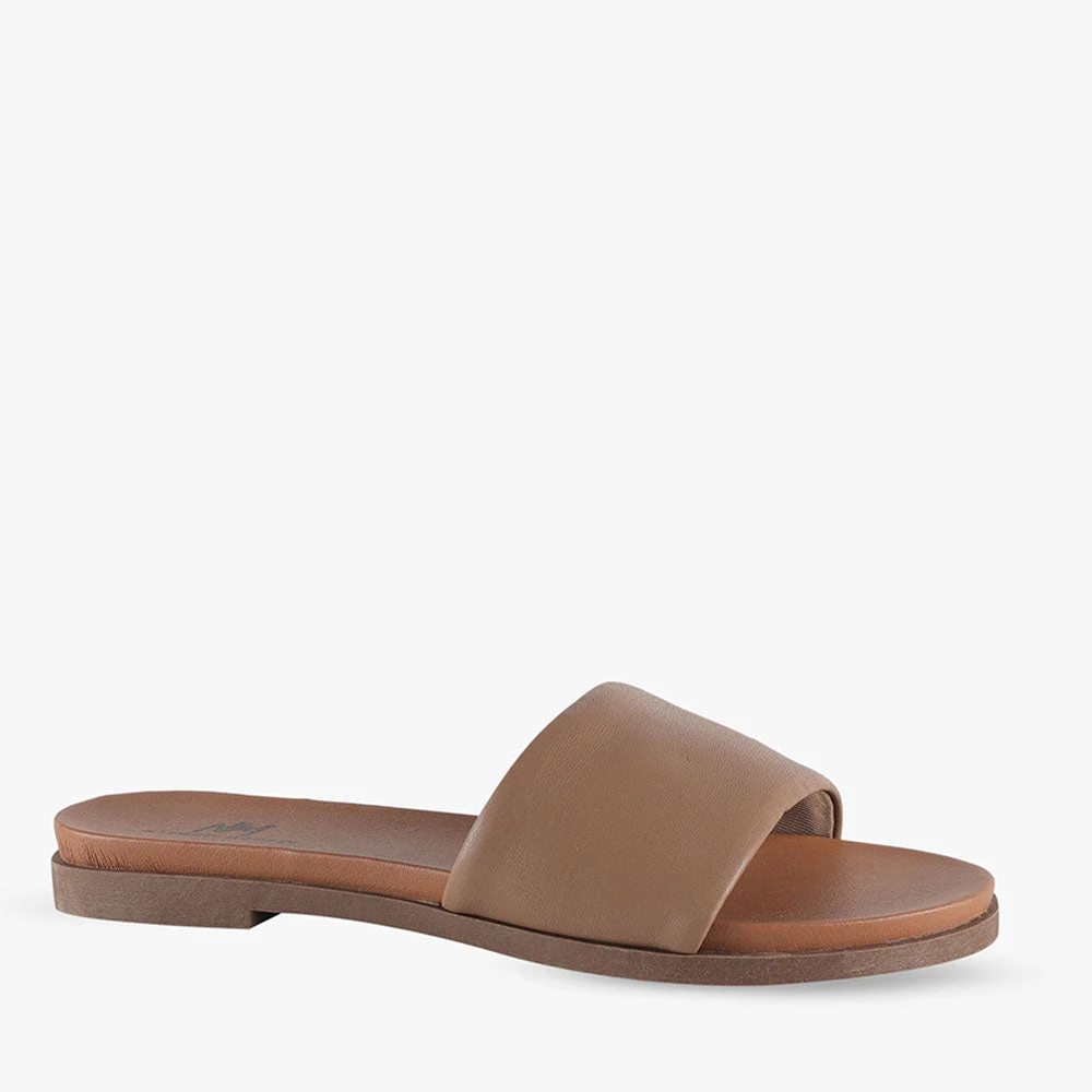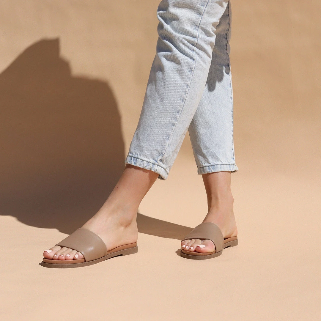 Featuring a soft single strap for a minimal and trendy look. The perfect sandal to slide on with any outfit and instantly feel put together!