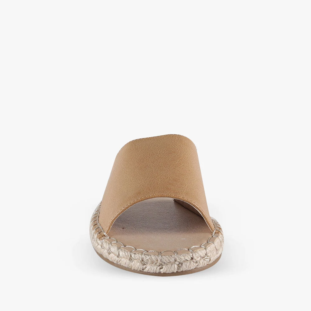 The perfect minimal and effortless sandals that will be your go to through out the warmer months. Featuring a espadrille trim and exposed stiching, this shoe boasts casual and coastal flare!