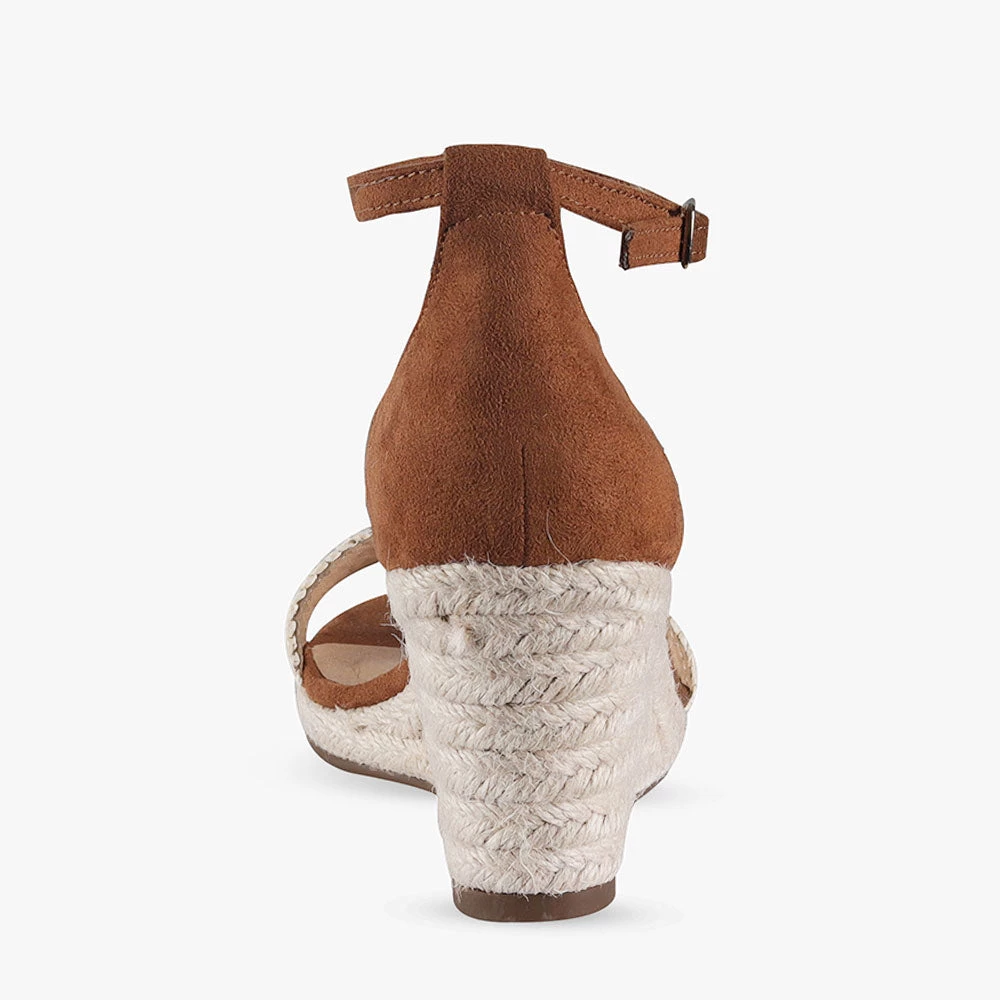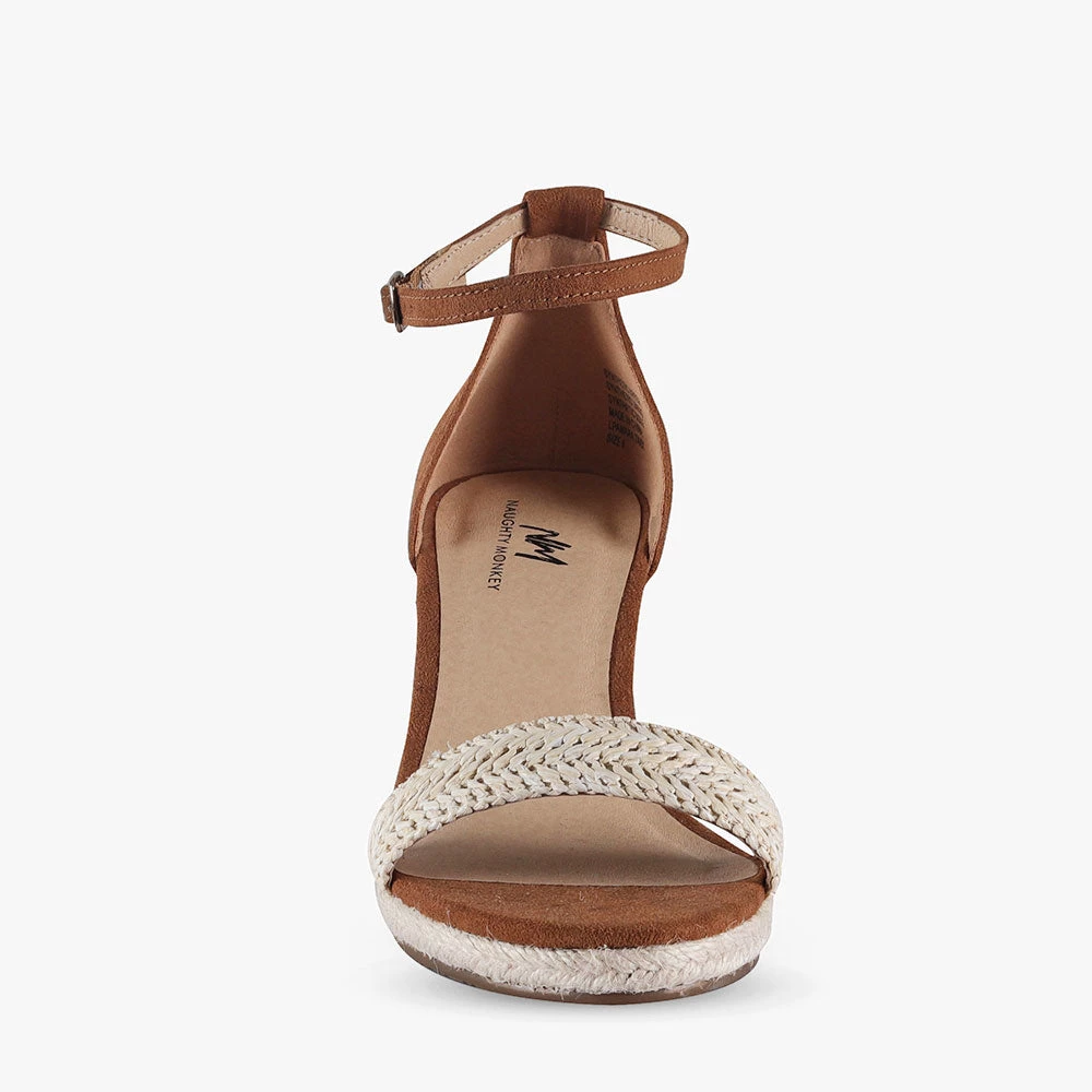 A classic, comfortable wedge to compliment your wardrobe this season! Featuring a jute style wedge and a slim ankle strap, the styling possibilities are endless. Step out in your Amara wedges by Naughty Monkey.