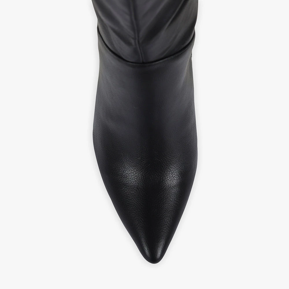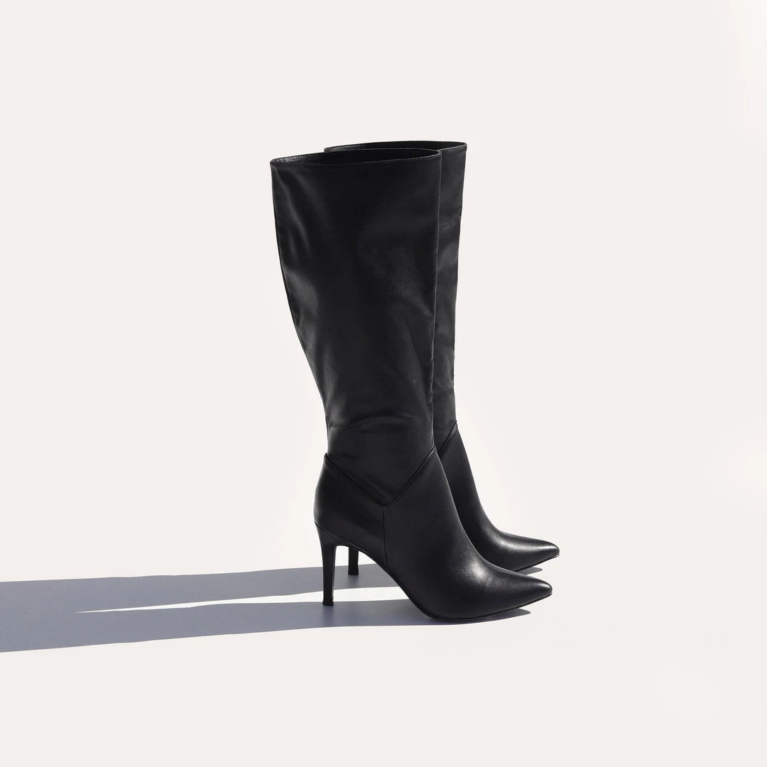 Featuring a pointed toe and equally pointed stiletto heel. Holdon is savvy and screams a stylish attitude. Picture them with a grungy t-shirt dress and chic coat to ensure Holdon is your statement outfit piece. Step into Holdon boots by Pied A Terre today!
