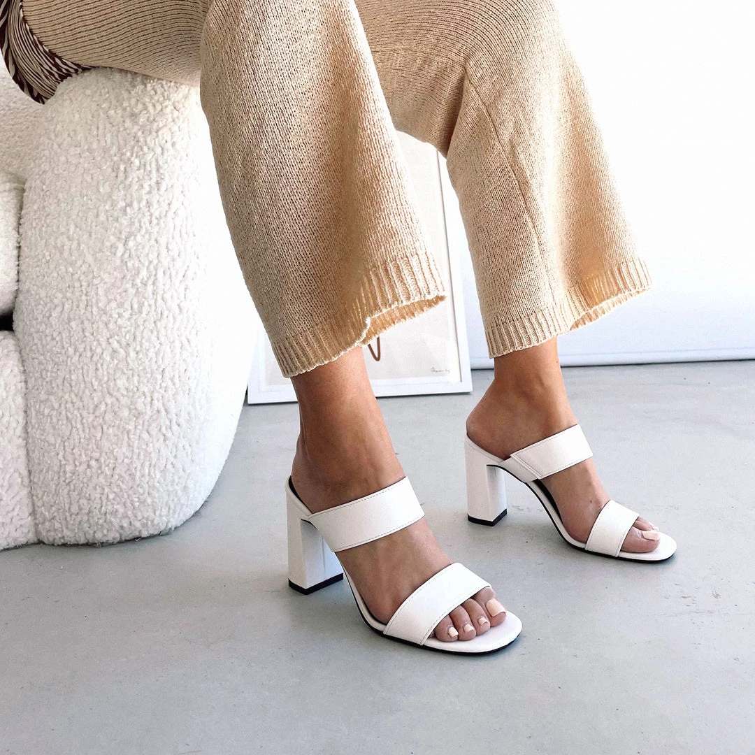 Featuring two flattering straps across the foot, and a block heel. This is the ultimate heel to pair with almost everything this season.