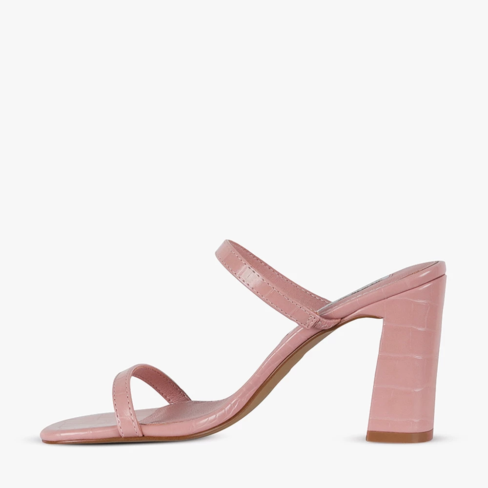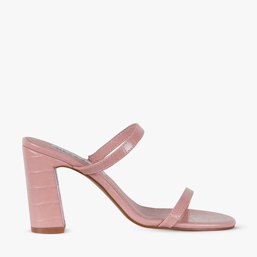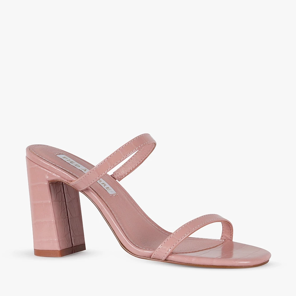 Zuli is a mid-heel mule. Featuring a block heel and two slender straps across the toe and vamp. A must-have style this season, the Zuli mule is cute to boot! Slide into these stylish heels by Pied A Terre.